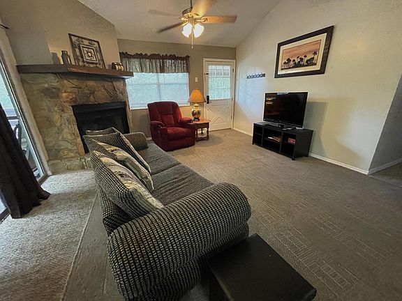 Full-size kitchen appliances, plus: Countertop oven/air fryer, Crock Pot, Bagel width Toaster, Keurig AND drip coffeemaker. Blender, Everything to cook at home. Even a compact bbq grill on the porch! Dishes, linens, towels, bedding, cookware, cutlery, etc. etc. Stone working fireplace. Central heat & air. Master suite has full bathroom w/ Garden Tub & Walk-In Closet, Shared LAUNDRY ROOM on ground floor .