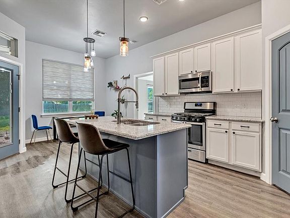 The show-stopping kitchen boasts an eye-catching accent island, granite countertops, a spacious pantry, and stainless steel appliances — including a dishwasher, OTR microwave, and stove. Whether you're entertaining or preparing everyday meals, this space delivers both beauty and functionality.