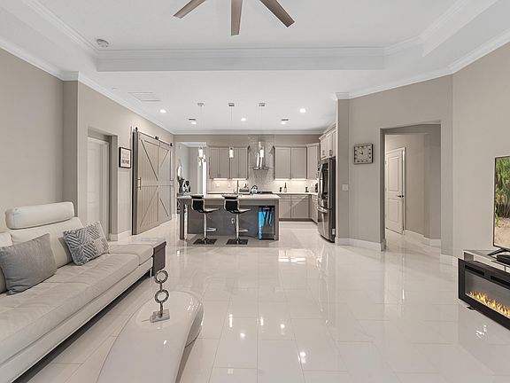 Here is a pristine 2022 custom CBS home situated on 5 acres in the upscale ranchette community of Bridlewood Ranches. This 3-bedroom, 2.5-bath residence spans over 2300sqft under air, boasting marble floors throughout, a formal dining room and a quartzite-finished open kitchen with island just off the home's formal living area. The expansive master suite, approximately 700sqft, features a walk-in closet, dual vanities, a soaking tub, and a marble stone shower. On the guest side of the home, you'll find the 2nd and 3rd oversized bedrooms, 1 & 1/2 bath and laundry room. Enjoy the peaceful country sunsets and wildlife viewing, including deer and turkey, from your new screened porch. Also a separate RV parking area with hookups and garden shed is included.