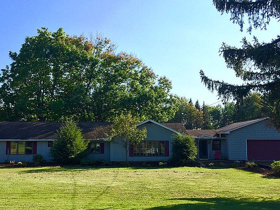One story ranch on 2 acres with a spectacular view of Findley Lake. Newly updated, open concept kitchen with butcher block countertops. Completely fenced in back yard with vinyl fence in front and chain link throughout the back makes this backyard oasis the perfect spot!! Located on quiet Shadyside road which is lightly traveled; great for walking, running, and bicycling. Flat grassy yard with tree house in the back, fire pit, hot tub, 2 decks, one off laundry room and large deck off back of house with adjacent screen room, landscape pond, and gardens. Residence is conveniently located in Western NY / PA border: -3 miles from Peak N Peek ski resort and spa, -3 miles from off of I86, -15 minutes from I90, -20 minutes from Erie, -25 minutes from Chautauqua Institute and Lakewood, NY. -90 minutes from Cleveland, 90 minutes from Buffalo, 2 hours from Pittsburgh and -3 hours from Toronto, Canada. 4 bedrooms, living room, dining room, kitchen, 2 bathrooms (showers, no bathtubs), laundry room, tile breezeway that separates the house from 2 large car garage. Central air conditioning, high efficiency forced air gas furnace. Full foundation, 3 foot crawl space with lighting.