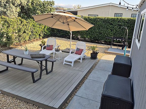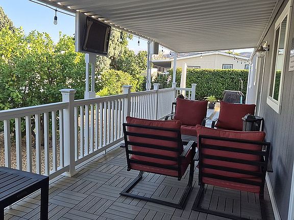 Well maintained furnished 1979 home offers state-of-the-art lighting, entertainment & security to provide you with top-of-the-line technology and peace of mind. A Control4 home automation system, a complete smart energy efficient LED light control, smart thermostat for maximized energy efficiency, 5-zone whole house music system with on-wall digital volume controls, and on-wall 10in color touchscreen. Security camera system with 6 color night vision cameras, a video doorbell and Paradox burglar alarm system, monitored smoke detectors- free alarm Monitoring Service for 3 months. Alarm has key chain remotes and a wireless panic button as well. Automatic flood lights, fully updated kitchen with stainless steel appliances- Whirlpool microwave, dishwasher and gas range, Kenmore refrigerator, dimming recessed lighting, large pantry cabinets with soft closing doors, high table with 4 highchairs, & wine bar cabinet. Laundry room- GE washer and dryer, lots of storage space, bench with 4 pullout shoe drawers, deep sink with clothes drying rail above, &coat rack. Living/Dining Room; High-end entertainment includes 5.1 surround sound with Denon 3 -zone surround amplifier, Definitive Technology and Martin Logan speakers, a 65in. Samsung TV and a drop down motorized 120in. Movie Screen & JVC Projector- all controlled by a Control4 universal remote controller. Entertainment unit has 2 automatic temperature controlled quiet fans for the amplifiers. A 16-port LAN switch provides wired internet to all electronics and wired internet (data) connection to guest bedroom, main bedroom and office. Large wardrobe coat closet, end table, extra deep sofa and loveseat set with matching ottoman. Glass dining table and 4 leather chairs. Completely remodeled bathrooms; main bath with full tub & make-up area, & Guest bathroom with shower, Office has 3-piece desk with hutch, a high back rolling chair, whiteboard, 5 tall cabinets with soft closing doors, Guest bedroom: queen size bed frame & box spring, 2 nightstands with lamps, large mirrored closet, multipurpose storage with bins, mirrored closet and wall mounted 46in Samsung 4K TV, Main Bedroom: Cal. King size remote control operated adjustable bed frame with two box springs, 2 nightstands with USB & plug outlets in drawers, entertainment stand, wall mounted 49in LG 4K TV, a Control4 automation unit with Control4 universal remote controller & charging cradle, large mirrored closet, tall 4 drawer chest, & bed bench. waterproof Laminated hardwood flooring throughout, with carpeting in two bedrooms, , vertical blinds throughout, updated: siding/shirting, JELD-WEN double-pane windows and sliding glass door. Exterior doors, 1 layer asphalt-shingle roof, New under-the floor insulation, copper pipes, under-house fan for humidity control. Shed with 6 heavy duty shelving. Three composite floating decks; carport area with two metal chairs and table, backyard- one with flat-top BBQ & preparation cart, and one with an 11 feet cantilever umbrella with heavy duty base, 2 white lounge chairs and picnic table. Main patio/deck has composite decking, a small TV and 2 outdoor speakers, PVC railings with lighted caps, carport stairs have lighted caps too. Fruit Trees; orange, lemon, kumquat and 2-in pot lime trees. Low maintenance backyard with decorative rocks, drip irrigation with Rachio smart sprinkler remote access control, automated landscape accent lighting, a stereo Rock speaker, and multiple outdoor storage units. Seller to provide home automation demonstration video for system introduction and for future reference, a free one-time application set-up for access to the following systems through your android or iPhone- Control4system, LTS Connect Camera system, BlueEye Alarm system, Rachio waterline system and eufy doorbird system. Includes programming system to install your favorite streaming service, and programming to match your customized lighting scenes.