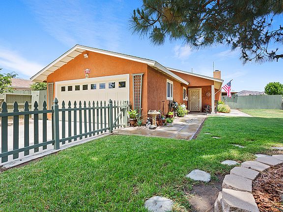 Welcome to our home. This 3 bed, 2 bath reverse Ranch home is ready for it's next family. Featuring a fully fenced corner lot w/RV parking, Tuff Shed w/ electric and a loft, and enough yard for kids/pets. The backyard is split with a raised garden on one side and a lawn on the other. Hard-scaped areas around the garden and stamped concrete covered patio to lower water costs and reduce maintenance. The stamped concrete, covered patio adds about 600 more square feet for entertaining. The Interior of the home has been painted, and most of the flooring has been replaced to include Tile/Laminate/Carpet. The Kitchen has been updated (2015) with refaced cabinets & new hardware, slab granite countertops, stainless appliances, and wood plank tile flooring. We even added a custom wood encasement for our can lighting. The kitchen is Gorgeous and large enough for all the women in your life. Custom woodwork throughout the house and ceiling fans in all the bedrooms. The master bathroom has custom wainscoting, handcrafted swinging bar doors, new quartz countertop, sinks, and faucets. The 2nd full bath has custom wainscoted walls, parquet flooring, and shower in tub bath. In the living room there is a floor to ceiling brick fireplace w/ raised hearth & custom mantel and mirror. The living room is carpeted with laminate at the front door running into the laundry room. Major Upgrades include the HVAC system, Hot Water Heater, and Electric Panel (2010), Kitchen (2015), Replaced Roof (2017), Replaced Master Bathroom Vanity Counter top, Mirrors, Bowls, and faucets. We have done a lot of little things throughout the home, such as doors, casings, and hardware, baseboards, added rocker switches throughout the home, mirrored closet doors in master and office, added a glass paneled door to laundry room and converted the laundry room closet to a large pantry. Much more to this home than meets the eye. Don't put off seeing this home, it's the nicest in the neighborhood. NO HOA Dues, and Very Low Taxes, only 1.0357% with one Special Assessment of $28 a year for our Parks. #AffordableLivingInSoCal