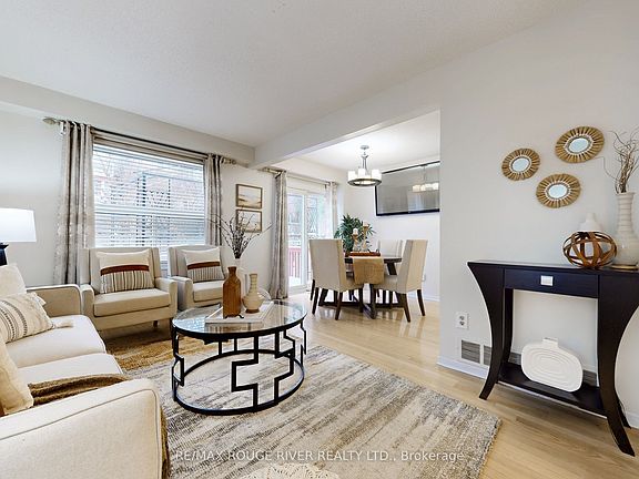 Welcome to Brock Ridge community. Freshly painted detached 3 bedrooms home. Hardwood floors on main and second floors. Featuring a finished rec room and spacious entertainment area. Nestled in a in a quiet family-oriented neighborhood surrounded by park, trails and excellent schools. Bright open layout with an easy flow, featuring a spacious living and dining room. Bright eat-in kitchen with quartz countertop. Upstairs offers 3 bedrooms. Perfect for a growing family, downsizing, or ideal for first time buyers. Step to school, supermarket, 401,407 and go train. The backyard is all fenced. large deck for your barbecues and summer evenings. Places of worship.