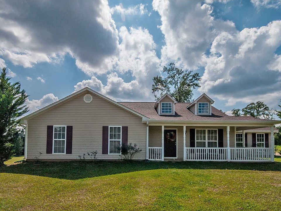 Fantastic home in the country! This 3/2 on 10+acres of land has everything you need, call today because it will not last long! With a long private drive and stocked pond out front there is plenty of fenced acreage for your four legged friends, a 2 car attached-side entry garage and large covered front porch. Inside enjoy time with friends and family in the spacious living room that is open to the kitchen, keeping and dining areas. You will find an office, large master suite with garden tub and separate shower. Updated colors throughout, beautiful hardwood flooring and a laundry room top everything off! Call today for your private showing.