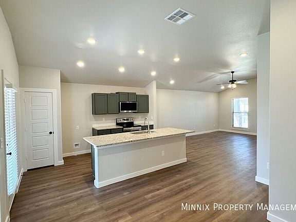 A brand new construction home located in the vibrant city of Lubbock, TX. This stunning property boasts three spacious bedrooms and two full bathrooms, offering ample space for comfort and convenience. The kitchen is a chef's dream, equipped with a dishwasher, microwave, and granite counters. The dining room is perfect for hosting meals and gatherings. The home also features ceiling fans, central heat, and central air conditioning to ensure your comfort all year round. The property comes with a two-car attached garage and laundry hookups in the unit for your convenience. The xeriscape yard is not only beautiful but also low maintenance. This home is dog-friendly, however, no cats are allowed. The tenant is responsible for gas, electric, trash removal, and water. The home also offers a zero deposit move-in option for ease and convenience. Additional features include a pantry, a front porch, a fenced yard, and a walk-in closet. This home is available for a one-year lease. Experience the best of Lubbock living in this beautiful new home.