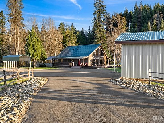 Down a Private Drive behind the Gates sits a Meticulous Estate on 3 Acres w/2 Detached Shops, Private Pond & Whimsical Creek! Large Entertainment Deck sets the stage & welcomes you. Upon entry note; Pine T&G Vaulted Ceilings, Stone Fireplace & Vast Windows bringing the Outside In. Living Room opens to Large Dining Area & Kitchen. Main Floor Primary & Ensuite down the hall along w/Add'l Bedroom, Full Bath & Laundry. Upstairs is a sizable 3rd Bedrm/Loft. Outside find 2 Detached 24’X36’ SHOPS, 2 Lean-to’s, RV Carport & Clean Out, Car Lift, Shed, Gazebo, Horseshoe Pit & More! Updates include Metal Roof, Hardi-Plank & Cedar Siding, Kitchen Appliances, Ductless Mini-Splits, Interior Paint & Light Fixtures. Perfect for Primary Res, 2nd Home or STR