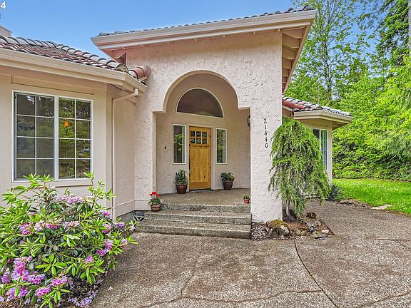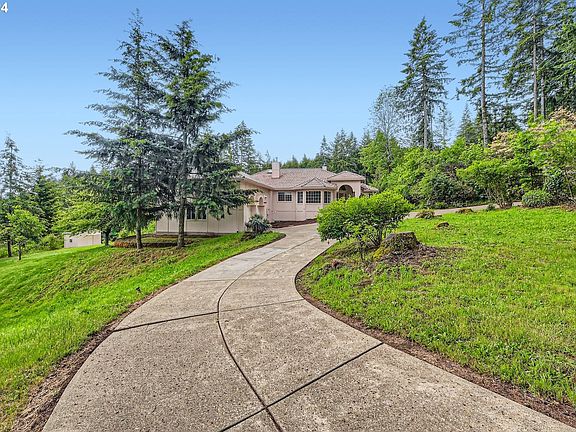 Heart of the Pacific NW Highlands! This lovingly lived in and strikingly classic home and property have plenty of blank canvas for you to put your imprint on! High on the hills, this enchantingly tranquil, Bald Peak, Chehelam Mountain, Wine Country home has 9.86 acres of modern living, peace and quiet on a private road of upscale acreage homes. Centrally situated from Newberg (15 min.), Hillsboro and Beaverton (20 min.), Sherwood (20 min.) and Forest Grove (25 min.), makes for short drives to major business areas. Mediterranean Style home offers an elegant greeting as you enter the semi-circular driveway. The gracious entry foyer invites you into a spacious, well lighted entry area flanked by formal living room and formal dining room.Further down the main hall, the homey warmth of the great room leads you into the adjoining, well equipped cook's kitchen and then right on out to the expansive deck to enjoy the countryside and mountain vistas opening up before you. There are 5 conforming BR's and three full baths! The main floor primary suite includes walk in closet, ensuite with captivating views to behold while relaxing in the soaking tub. The huge, fully finished lower level makes a great separate unit for guests or other possibilities complete with bedroom, bathroom, wet bar, and potential kitchenette; all this in a lovely well lighted space with views and a private entrance. Also on this level are ample storage areas for wine or household items.This is the best of the rural life with plenty of privacy and genteel community. Lush forest replete with fir, cedar and ferns along meandering trails to hike or bike or wander at your leisure. Fresh air, copious fresh water from your own well, sunny space for gardens, creek, chicken coop, 18'x40' tractor barn, sturdy woodshed/tool room/storage. Enormous garage has a large loft with railed stairway; room for cars, shop and storage. If you are looking for a refined forest hideaway, make sure to put this one on your list.