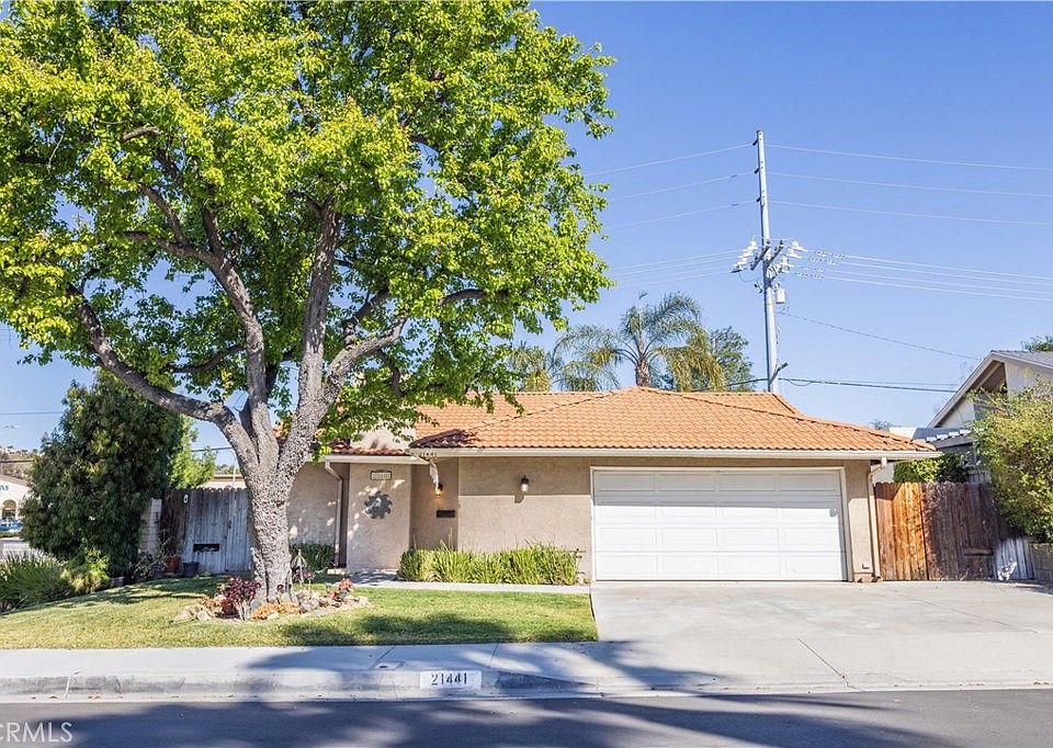 This beautiful home is nestled on a sweeping 7,604 square foot corner lot in a fantastic Santa Clarita neighborhood. Here are just a few of its many other fine features: Its lush landscaping, colorful planters, majestic shade tree and tile roof enhance its eye-catching curb appeal. Double front doors swing open to a freshly painted 1,381 square foot open concept floor with aesthetic blend of polished cement and luxury vinyl flooring, has a high vaulted ceiling and mantled gas-burning fireplace, the kitchen’s efficient ceiling fan, abundant cabinets, ample tile counters, direct patio access. 3 bedrooms. The grand suite has a roomy direct patio access, and a well-appointed private bathroom, A total of 2 bathrooms. Functionally located laundry area. Energy efficient dual pane, Central heat & air for year-round comfort, Copper plumbing. You’re going to appreciate and enjoy the tiered and partitioned, Spacious backyard andprivacy fencing , large entertainer’s patio, swaying palm trees, and the flexibility of the lower yard. Plenty of secure off-street parking on the oversized concrete driveway and in the 2-car direct access garage. You’re going to enjoy the communities 2 sparkling pools and full basketball court. Great location , close to Schools, grocery stores, restaurants, shopping, and Central Park.