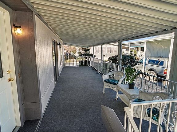 Welcome home to Greenbrier Estates, a gated 55+ manufactured home community in Santa Clarita. This super nice 2 bed 2 bath home offers an expansive family-living room combo with a built-in storage cabinet, laminate flooring, beamed ceilings, and a slider that leads to the front patio. The kitchen opens to the dining area and features a breakfast bar, an abundance of cabinet and counter space, an electric stove top, and travertine flooring. The appliances and sink were all replaced 5-6 years ago and the refrigerator is included. The master and 2nd bedrooms are on opposite sides of the home, offering complete privacy. The master bedroom has a walk-in closet, built in storage cabinet, and ceiling fan. The spacious master bath has a newer vanity and walk-in shower with bench seat and grab bar. The secondary bath off the living room has a shower-in-tub and a door that connects it to the 2nd bedroom. There is a laundry room with a built-in desk and a back door that leads to the tandem, covered carport. Washer and dryer are included. Other items to note include dual pane windows (except slider and bath) and fresh exterior paint. The covered patio at the front of the home and the vinyl fenced rear yard offer plenty of outdoor space for relaxing or gathering. A clean canvas to make it your own. Community amenities include clubhouse, 2 pools and spas, a card room, a billiard room, a library, and RV parking.