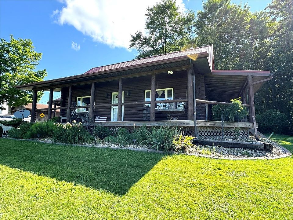 Authentically constructed log home with modern amenities making for the perfect retreat or year round home. An astonishing 55 acres, overlooking wildlife and scenic peaks and valleys. this home has unbelievable views and privacy. Granite kitchen with all new appliances complimenting the bamboo hardwood flooring throughout, a secondary bathroom plumbed and ready to be completed and a large finished basement with updated mechanics. New metal roof in 2023. Professional landscaping, tasteful perennials give spring new life every year. Recently replaced covered wrap around porch. This home offers a whole home generator and heated garage. Several out buildings allow for versatility. 200 amp electric service.