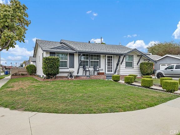 Fantastic purchase opportunity on this immaculate, TURN-KEY 3-bed 2-bath home on a corner lot with great curb appeal! This home is located on a quiet cul-de-sac street, in one of Lakewood’s most popular neighborhoods. Enter the home to enjoy a cozy great room where you can relax or entertain. The fully-remodeled kitchen and breakfast nook are flooded with natural light, creating a perfect environment you will love to cook in and dine together with loved ones. Upgrades in the kitchen include quartz countertops, subway tile backsplash and recessed lighting. Super spacious primary bedroom enjoys the most privacy and another tastefully remodeled ensuite bathroom with custom tile works and a walk-in closet. Nice size second and third bedrooms have ceiling fans, mirrored wardrobe doors and a walk-in closet. Both the primary bedroom and laundry room open up to the backyard, which has both a hardscaped area and a well maintained green lawn perfect for entertaining. Lastly, the two-car detached garage faces the adjacent street for convenient access. All upgrades have been done in recent years and include a repipe, newer roof, dual-pane windows, electrical, HVAC, luxury vinyl floors throughout, and plantation shutters. Excellent location near the 605 and 405 freeways and upscale shopping centers, and within the boundaries of the prized ABC Unified School District. This home truly checks off all the boxes and offers an unbeatable combination of charm and value. Don't miss out!
