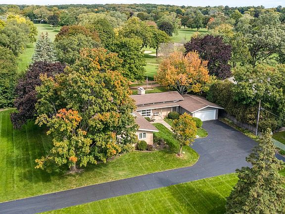 Immaculate Mid Century Modern home offers a RARE OPPORTUNITY to live ON the prestigious Glen Flora Country Club Golf Course! Only 8 homes back to this exclusive course, and this one sits on .75 acres just off the second green. This beautiful ranch offers spectacular views and loads of privacy. The welcoming entry has a wall of windows with southern exposure for natural light. You are greeted by the mid century modern beams in the front hall with cool uplighting and high ceilings. The living room has a beautiful wood plank vaulted ceiling and the windows offer a spectacular view of the backyard and golf course. The gas fireplace is a beautiful focal point on an all brick wall, and the clerestory windows add yet another mid century modern feel. The dining room also boasts beautiful golf course views and flows seamlessly into the kitchen. Kitchen was remodeled 4 years ago and features new flooring, maple cabinetry, quartz countertops and stainless appliances. The eating area off the kitchen also includes a built in bar area perfect for coffee, cocktails, or just to display dishes. The kitchen/eating area open directly to the family room with a full wall of windows and access to the back deck. Down the hall you will discover the sizable primary suite with new laminate flooring and double closets for plenty of storage! The en suite primary bath has full mid century modern appeal with its perfect powder blue tile, sink and tub. There are two additional bedrooms and a fully updated second bath, and a fully updated half bath on the main floor as well. The basement awaits your personal touches, or leave the fabulous shuffleboard court floor and embrace the mid-mod vibes! A second fireplace, half bath, laundry, and a great workshop with separate staircase up to the garage complete the basement. Large 2 car side load garage and plenty of driveway space for extra parking is accessed by the front breezeway. The back deck is perfect for entertaining, and for views of the beautiful Glen Flora golf course! This lot includes an extra 70x135 lot south of the driveway for future potential. This home is truly special and has only had two owners - waiting for the third! Previous contract had a home-sale contingency and buyers did not meet the deadline. Inspection has already been done and a few small fixes have already been repaired - this one is ready to go!