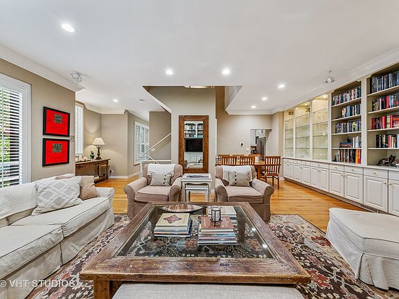 Remarkably spacious Lincoln Park townhouse nestled near the zoo, park, and lakefront in an 8 unit gated association. The flowing floor plan is NOT typical - it's wide with great square footage on each level. This home has been HIGHLY UPGRADED with built-ins offering uniquely ample storage. Huge kitchen! The 54" double cabinets are complemented by the newer stainless steel appliances (Dacor, Miele...) and the eating area overlooks the charming cobblestone courtyard. Hardwood floors extend through all the levels and staircases, and custom plantation shutters are found on most windows. What a luxurious primary bedroom suite- the bath is a spa--Kohler jet tub, double vanity with triple recessed medicine cabinets, marble finishes.... The lower level family room includes the 2nd gas fireplace, and with its full bath, it can serve as a 4th bedroom or convertible guest suite, if desired. The very private and newly finished roof deck includes Trex decking, pergola, lattice accents and Fisher & Paykel grill with granite surround. The home office and wet bar are brightly lit by the 3 skylights. This is the perfect home to live, work, play, and nest! Lincoln Elementary, Francis Parker schools. Spectacular location!!! *** See Matterport Tour and Feature Sheet for details ***