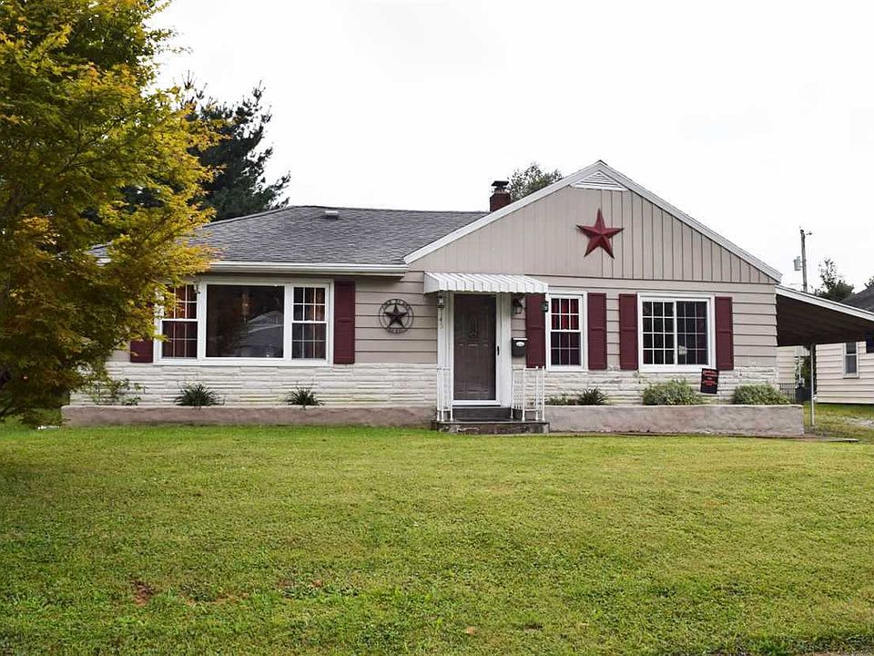 Hurry, you don't want to miss this updated ranch with almost 1300 square feet plus a partial basement and attached carport. The large privacy fenced back yard features an inviting covered patio and a yard barn. Inside the open floor plan has a lot to offer! Pretty maple kitchen cabinets, granite look counter tops, porcelain sink, black appliances, and a breakfast bar. A large dining area, both with custom tile floors. Open to the nice sized living room with loads of natural light. The split bedroom design is sure to please with the master featuring a full wall of closets. The full bath also has custom tile work. Newer roof, windows, and doors. Possible immediate possession. Hurry, don't miss this one!