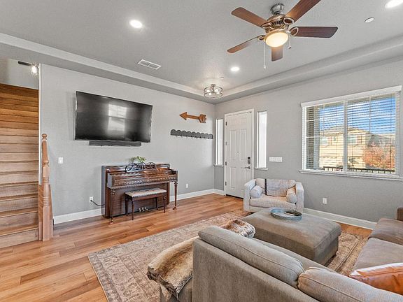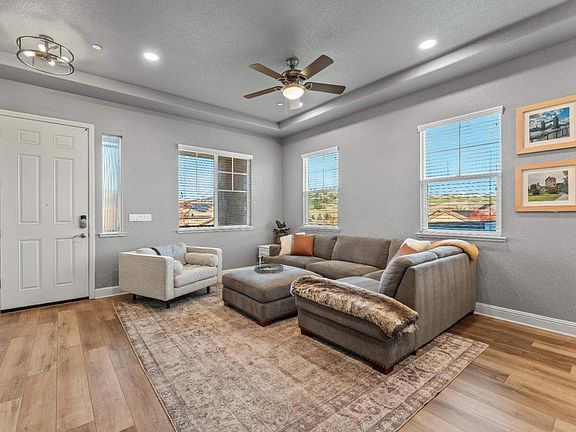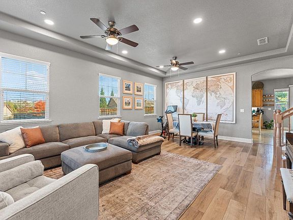 This beautifully appointed 5-bedroom home offers the perfect blend of comfort and style. The downstairs open-concept living-dining area and kitchen-family areas are perfect for entertaining. The kitchen boasts seating for 8+ at the oversized island along with a spacious dining area. Other amenities include: Whirlpool oven, microwave and 5-burner gas cooktop, large pantry with an abundance of cabinetry. The kitchen and family room flow seamlessly to the private backyard retreat complete with a covered patio, solar-heated pool, fire pit, built-in BBQ w/refrigerator, concrete lounge area with plenty of space for outdoor games. Don't forget the convenient downstairs bedroom and bathroom. Stylish shiplap on the stairway leads upstairs where you can step through the double-door entry into your office featuring custom horizontal paneling. Generously sized upstairs bedrooms with large closets. Bathrooms feature solid-surface counters and tile flooring, custom backsplash and mirrors. The 3-car garage offers built-in shelving, overhead storage, and an EV charger. Walking distance to Vista Del Lago HS and Russell Ranch Elementary. ADU plans are available. Builder shows this home is 3,288 sq ft. See attached floor plan