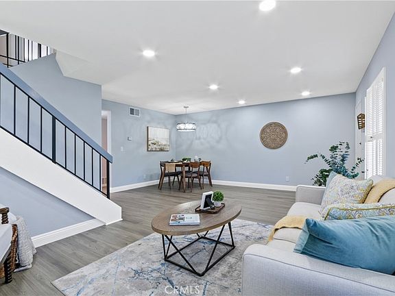 Welcome to The Gardens, one of San Pedro's most sought after townhome communities! This spacious end unit has been beautifully upgraded and is completely turnkey! As you enter, you will surely note the fresh interior paint throughout, and the beautiful new laminate flooring, as well as smooth ceilings, and recessed lighting. This unit gets incredible sunlight, making the space feel bright and open. A formal living room and dining room area offers great space for entertaining and as you continue through, you will find a spacious family room and a nicely upgraded kitchen. Enjoy the view of your private patio through the kitchen garden window. Beautiful quartz countertops, a farmhouse style sink recessed lighting, and a brand new stainless steel stove are just some of the upgrades you will find here. You will surely enjoy spending your evenings in your inground spa, which is a luxury not often found in this complex. Upstairs, you’ll find two generous en-suite bedrooms; the larger primary bedroom has a balcony overlooking the community pool which makes it feel like your own private resort. There is a wall of floor to ceiling, closets with mirrored doors, and behind that is a well-kept secret- additional finished built-out closet space! A 3/4 bath has also been upgraded with new counters, fixtures and a newer shower surround. The second bedroom is also large with similar closet space - no lack of storage here!! The oversized 2-car garage provides ample storage with tons of cabinets and a workbench, and you will also find the laundry here! As an added bonus, there is an additional row of public parking behind your garage making it super convenient for your guests!