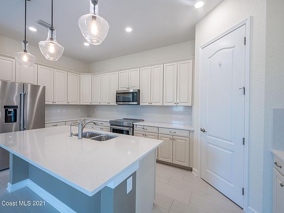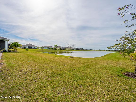 Watch incredible sunsets across the long lake view from your own backyard. Triple sliders lead to an extended paver open patio for plenty of entertaining and outdoor living. This nearly new Sophia floorplan offers three bedrooms w/ three full baths and a den (w/ closet). Open concept living combines Dining and Family rooms with full access to the gourmet kitchen. Upgraded appliances, quartz counters, beautiful white cabinetry and a large island make it a dream to cook in! Upgraded porcelain tile and luxury vinyl flooring throughout home (with the exception of one bedroom). Neutral colors and upgraded lighting make this home light and bright and ready to move in! Why wait to build when you can enjoy this home now!?! Live the resort style life with Bridgewater at Viera's Amenity Center!