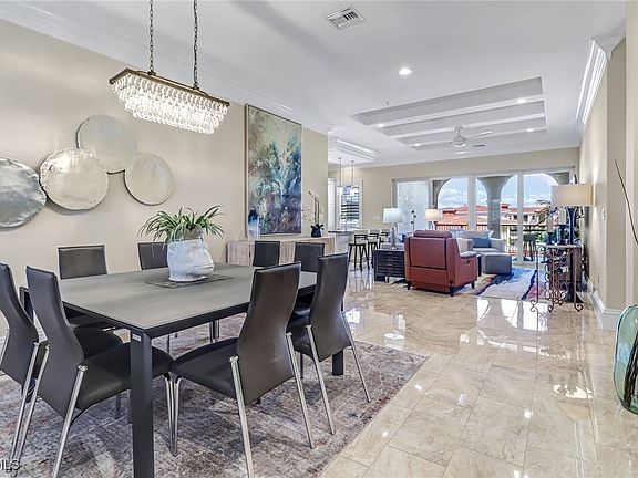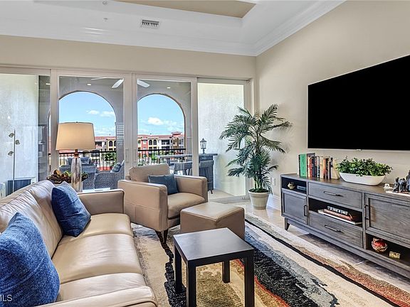 Welcome to the Genova Luxury Condos located in Estero, where opulence meets convenience. This exquisite 4th-floor condo offers a lavish open floor plan with 3 bedrooms and 2 bathrooms. Enter to find high-end features like a wall oven and microwave, granite counters, and luxurious tiled floors that exude sophistication. The oversized screened-in balcony presents breathtaking, private views, creating an oasis of tranquility. Indulge in the spa-like large, tiled shower with a free-standing tub, while coffered ceilings and elegant window treatments add to the upscale ambiance. Added luxuries include an oversized 2-stall garage, a locked storage locker, and an air-conditioned storage closet, ensuring ample space for your belongings. Genova amenities elevate your lifestyle with an indoor lap pool, outdoor resort-style pool, fitness center, clubhouse, and bocce courts. A private gate leads to Estero Community Park, offering a dog park, pickleball courts, and a vibrant community center just steps away. Experience the pinnacle of luxury living at Genova Luxury Condos of Estero!