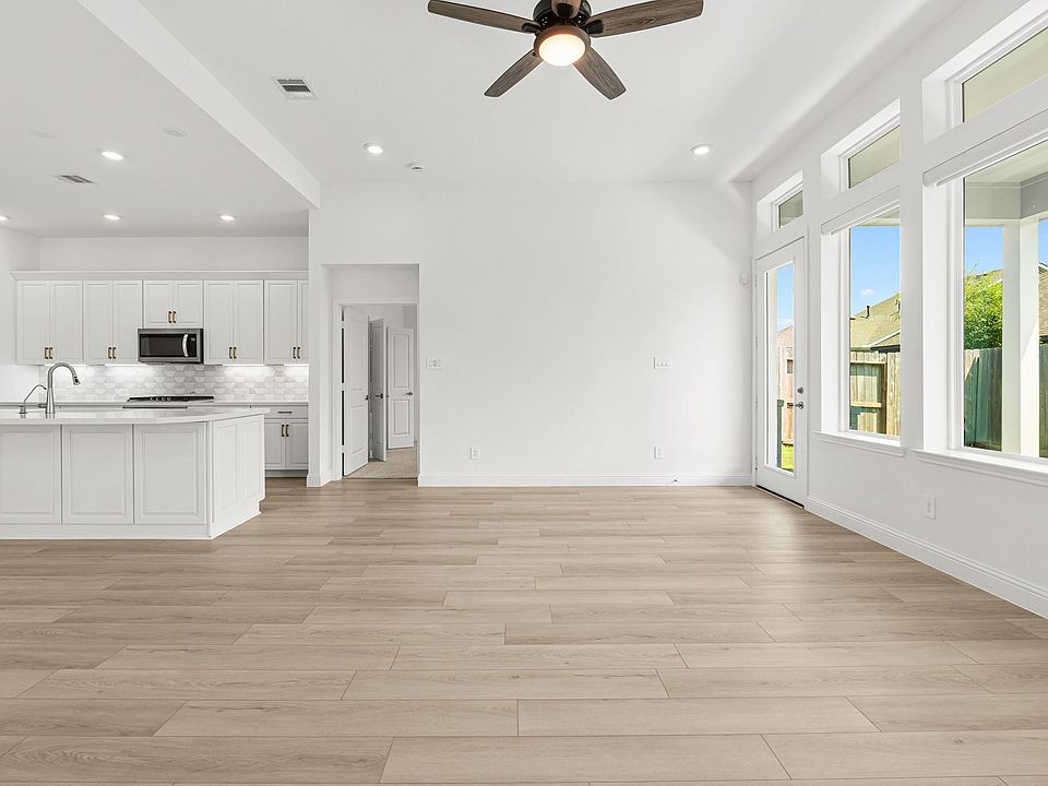 Sleek hardwareCustom motorized shadesFenced backyardUpgraded kitchen countertopsSpacious covered patio