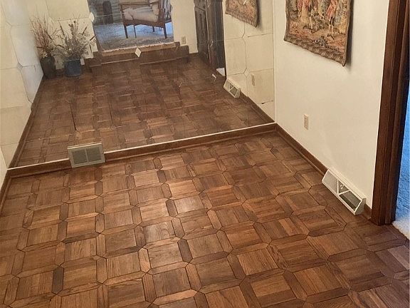 Vaulted ceilingFinished lower levelSplit bedroom floor planFamily roomFormal dining roomPrivate backyardParquet flooring