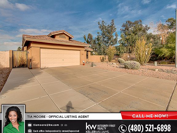 As you drive up to the home you''ll notice wide streets and mountain views.You will certainly appreciate the convenience of the corner lot and beauty of the desert landscaping.The front door has a decorative security door that opens into the great room.You''ll notice tile flooring, vaulted ceilings, and professionally painted interior.The eat in kitchen has generous cabinet space, recently installed granite counter-tops and center island.The dining area has laminate wood flooring.Sliding Patio doors and decorative security doors, open into quiet backyard with desert landscaping and large patio covered patio. A great place to entertain your guests outdoors.The master bedroom is spacious and features two closets and large bathroom with separate tub/shower. Call today to schedule your showing.
