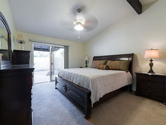You'll love this charming home and quite neighborhood. Walk into a courtyard entry where you can entertain and spend time with family and friends. Landscaping was just updated in Oct. 2016. Great room boasts vaulted ceilings, rustic wood beam and fireplace. Master suite has it's own backyard covered patio, vaulted ceilings and wood beam that accents the room nicely. This home is on a coveted North/South facing lot, you'll receive lots of non-direct natural sunlight. This home is within walking distance of the community pool, spa, and large park. You are minutes from schools and shopping. Avoid traffic by living less than a minute from the freeway (I-60).