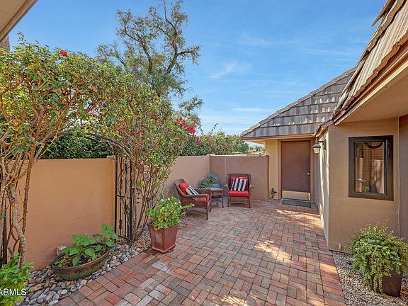 This impeccably cared for 3 BD + Office, 2 BA residence with updated dual pane windows and exterior doors sits on a beautifully landscaped cul-de-sac corner lot with multiple private patios, offering exceptional privacy within a quiet community of only 35 homes surrounded by multi-million mega mansions. Come drive by and see for yourself! The entryway is enhanced by a skylight for a light-filled space paired with wood-beam ceilings. Throughout enjoy updated LED can lighting, and enhanced electrical improvements. The living room showcases a large built-in wall unit with extensive storage and display, while the great room features a gas fireplace. The dining areas include both formal and eat-in options, highlighted by a massive glass window, french doors with patio access, and updated light fixtures. The kitchen offers granite countertops, updated stainless steel appliances, a gas cooktop, a built-in desk, and a large walk-in pantry with pull-out shelves, plus convenient patio access for indoor-outdoor dining. The primary suite features a propane fireplace, a sitting area, and private access to the patio. The primary bathroom features granite countertops, a spa-like jetted tub, a walk-in shower with floor-to-ceiling tilework, and an impressive walk-in closet with extensive built-ins for optimal organization. Additional interior highlights include a dedicated office with built-in desks and generous storage/display. Outdoor living shines in this property, with multiple patios for dining, lounging, and entertaining, a wrap-around patio layout, mature landscaping, and a charming firepit. Its location is unmatched, nestled around the multi-million-dollar homes of Bartlett Estates along the Camelback Corridor, and just moments from premier shopping, dining, entertainment, and the local farmers market. Enjoy a community pool where you may rarely see a neighbor enjoying pool area while you do. This is the best value in all of 85016, so you better hurry!