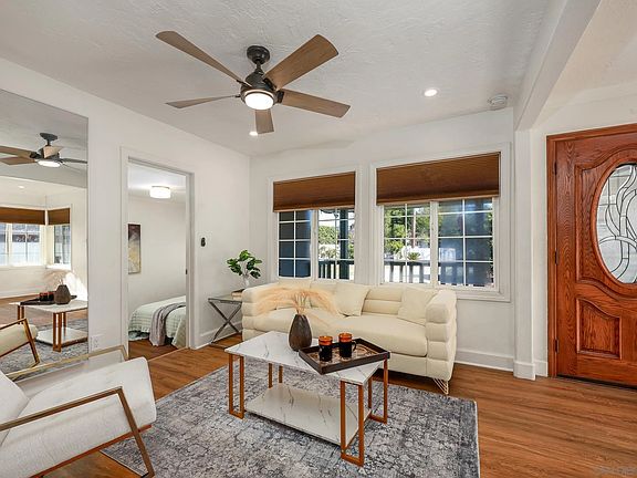 Tucked away at the end of a private road, this serene property offers a rare blend of privacy, space, and peaceful charm. Once the gates close, you’re welcomed by hummingbirds into a quiet retreat with room to spread out and unwind. Set on an expansive 8,712 sq ft lot, the property features 12 fruit trees, including seven citrus varieties—lemon, lime, tangerine, and navel orange—along with pomegranate, fig, loquat, plum, and nectarine trees. A large, secure chicken coop, five raised garden beds, and a generous front yard with RV or trailer clean-out provide excellent opportunities for sustainable living, hobbies, plenty of parking, or future expansion. The backyard is designed for connection and entertaining, with charming string lights that set the mood for relaxed evenings with friends and family. A detached shed with washer and dryer offers abundant storage and added functionality. Inside the home, enjoy thoughtful upgrades including a Bosch dishwasher and an AquaSauna three-stage water filtration system. This 2-bedroom, 1.5-bath home offers a peaceful, countryside feel while remaining conveniently close to city amenities—making it a strong option for affordable San Diego living. With a generous lot size and potential to add an additional ADU, this property provides flexibility and long-term value for buyers seeking space, privacy, and a more intentional lifestyle.