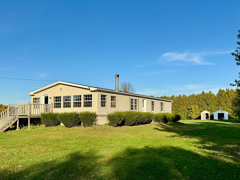 Welcome home to this move-in ready doublewide featuring 3 bedrooms and 2 full baths. The open-concept layout offers a spacious kitchen with a center island that flows into the dining area and living room, complete with a cozy pellet insert. The primary bedroom includes an attached bath with a double sink vanity, soaking tub, and separate shower - great for unwinding at the end of a long day.