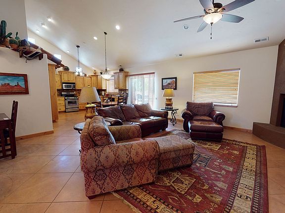 Situated on the east bench above the golf course, lovely Villa del Rio Verde is a stand-alone home that offers privacy and great views of the La Sal Mountains and west rim of Moab Valley. Tensions fade away as you step into the Great Room with its tall loft ceiling, rounded interior spaces, and sumptuous Southwest furnishings. The kitchen, dining, and living areas blend seamlessly to make the perfect place for everyone to gather after the day's adventures. The gas-log fireplace provides a cozy ambiance and you'll have full entertainment options with a 48" LCD HD television, Blu-Ray DVD player, satellite TV service and DSL internet with Wi/Fi.