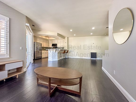 - Bright and spacious open-concept living and dining area with recessed lighting