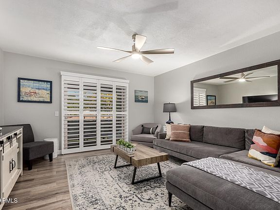 Location, Location, Location! Close access to two freeways: 101 and I-60. This recently completely remodeled 2-bedroom, 2-bathroom home offers modern living with stunning views of the community pool and tennis/pickleball courts. Designed for comfort and style, the interior feat ures impressive updated finishes, including sleek wood-look tile flooring with a thick underlayment pad that helps to insulate sound, luxurious granite counter tops in kitchen & bathrooms, contemporary fixtures, classic plantation shutters throughout and spacious rooms filled with natural light. The open-concept living area leads out to a private balcony where you can enjoy the peaceful ambiance of the well-maintained community & amenities. Residents have full access to all of Dobson Ranch's exceptional features, including scenic walking paths in this highly desireable lake subdivision, golf course, clubhouse and more. Perfect for those seeking a blend of luxury, convenience, and recreation. Heating & cooling system was replaced 4/2021. Water heater was replaced 8/2019 with Rheem Performance Platinum Gladiator - Smart Electric Water Heater with Leak Detection & Auto Shutoff: Built-in LeakSense leak detection system alerts you of any leak large or small, internal or external