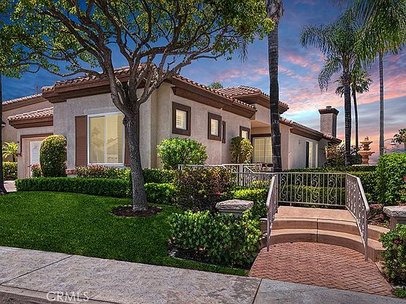 Look no further than 21461 Andorra for a beautiful single-level home in the fantastic gated 55+ community of Palmia, Mission Viejo! This highly desirable floor plan features 3 bedrooms and 2 full bathrooms on a spacious 1,826 sq. ft. of living space. Offering an open-concept living experience, you are greeted by a bright and spacious formal living and dining room upon entering the home. Opening up to the gourmet kitchen is the family room and dining nook, boasting wonderful views of the backyard at every turn. The Primary Suite features a walk-in closet, dual vanity sinks, an in-ground tub and walk-in shower. A secondary bedroom with an en-suit sits down the hall. This floor plan features an additional room that is currently an office but could also be used as an additional bedroom. Enjoy the outdoors all year-long in this expansive backyard with beautiful vistas of the neighborhood, palm trees and Saddleback Mountain. Additional features include shutters, crown molding and ceiling fans throughout. The Primary Bath and kitchen have been upgraded with beautiful finishes. The Palmia community offers wonderful amenities including a clubhouse, pool/spa, fitness center, tennis courts, library, 18 hole putting green, bocce and so much more. You can also enjoy all the amenities lake mission viejo has to offer.