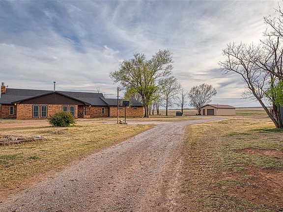 Welcome home to your retreat tucked away on 6 ACRES just minutes from Foss Lake. This 4-BED, 2-BATH HOME provides two spacious living areas. With a 2-CAR ATTACHED GARAGE and a 20X40 WORKSHOP and additional outbuildings, the outdoor possibilities are endless. Enjoy relaxing sunsets from your COVERED BACK PATIO--you may even see some wildlife grazing the nearby fields. NEW ROOF in 2022. NEW WINDOWS in 2022. WALK-IN SAFE ROOM IN THE GARAGE. Propane brought up to code in 2023. Termite treatment completed in May 2023 with T&M Termite and Pest Control.