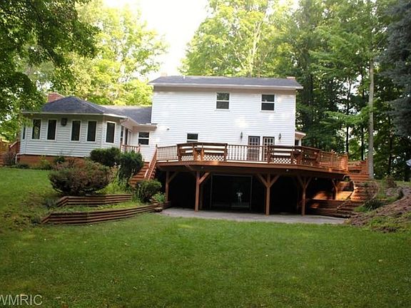 Location!Location!Location! 18 acres of hardwoods,pines & open fields to entice the natural habitat. The deer, turkey,and other wildlife offer great hunting opportunities. This executive style 4 bedrooms, 2 bath home has been elegantly remodeled throughout. Updates include:New spacious kitchen, with lots of cupboard and counter space, new appliances, new bathrooms, all new floor coverings, new paint, new fixtures and new furnace. Lots of natural daylight brightens the kitchen. Also includes newpatio in dining room leading to the oversized tiered decking,large family room with fireplace & cedar lined spa room for year round enjoyment. The walk-out basement offers a large recreation room with full wet bar and fireplace. Additional 48x56 commercial building for endless opportunities of use.