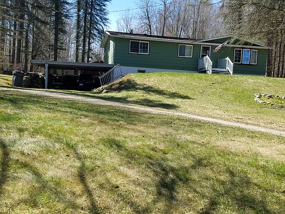 Peace and tranquility is found here along the bed of an unnamed creek. Enjoy wildlife and the sound of silence in your private park like setting. Updated kitchen boasts of solid surface counter tops, stone back splash and Hickory cabinetry. The living room includes a bay window and newer bamboo flooring. Main bedroom has a built in dresser, both secondary bedrooms are spacious and all bedrooms have ceiling fans and new carpeting. Main bath has luxury vinyl plank flooring, double sink vanity and low threshold shower. Walk-out basement includes family room with stone fireplace and karaoke area that includes mirror covered walls and wood parquet dance floor! All windows are newer than the age of the home. Metal roofing on all structures including the home, 32X20 garage, 24X24 two story barn and the 20X24 carport. Beautifully wooded 9 acres that include maple trees (the seller reports that the 3 trees they tapped for syrup gave 40 gallons of sap that converted to 1 gallon of syrup) and about a quarter mile of creek frontage!. Producing grape vines, trail system following perimeter of site, nicely developed circular driveway. The 2 story red barn has a concrete floor. 32X20 garage has workshop area with concrete floor, 1 car bay with concrete and 1 car bay with crushed stone floor. Irregular shaped parcel of land; see photo in listing data for identification of shape. Easterly line is defined by the creek bed, westerly line was marked by a previous owner. The furnace, water softener, whole house water filtration system and hot water heater were all new in 2019. Reolink video surveillance system with 4 cameras and monitor are included in the sale.