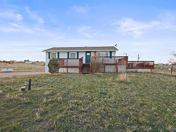 Escape the hustle & bustle of everyday life to this RARE countryside home offering just over 5 acres of gorgeous, useable land, a 4 stall horse barn with water + electric service, tack room + hay storage, a NEW 1944 sq ft workshop, NO HOA, neighborhood equestrian trails and just minutes to downtown Elizabeth & amenities! Immaculately maintained, this cozy and adorable 3 bedroom, 2 bathroom raised ranch offers functional open concept living, hardwood flooring, a custom bar top in the kitchen, updated light fixtures throughout, new windows, new gutters + soffits on the home and all out buildings, a new hot water heater, a newly insulated attic, a new front fence, a renovated laundry room, new front door, new garage openers and the list goes on, and on. Outside you'll find a spacious wrap around deck--the perfect place to relax, unwind and enjoy the captivating Colorado sunset. Do not miss this INCREDIBLE opportunity to own it all--the house, the land, the barn, AND the workshop at an affordable price!
