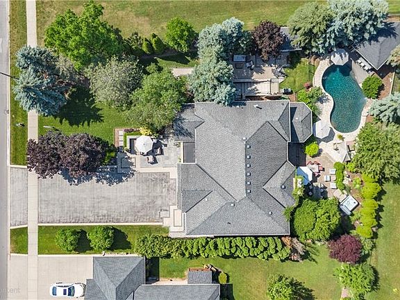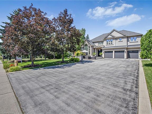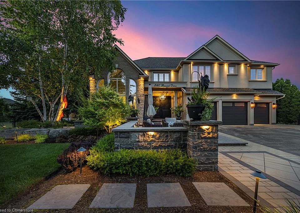 The GEM of Millcroft. Nestled in the golf course community of Millcroft, this meticulously maintained residence combines luxury living with ultimate convenience and stunning views. This magnificent lot is over 1/3 of an acre with a 90' frontage, a triple car garage and driveway for 9-12 vehicles. Beautiful stone steps and a grand entryway with outdoor seating leads to solid front doors that open to a grand foyer showcasing engineered hardwood floors throughout. A spacious living room on the left, great for relaxation adjacent to a dining room to accommodate large dinner parties. A grand island grabs your attention in the kitchen equipped with premium GE Monogram appliances, stunning stone countertops, custom cabinetry, and ample prep space perfect for entertaining or culinary creativity. A rec room for entertainment with a cozy gas fireplace also on the main floor, ideal for movie nights or cozy relaxation. Down the hall lies an office with outside access to a covered porch. Up the staircase the second floor greets you with a large open space. The primary bedroom is a tranquil retreat with a gorgeous fireplace, and access to a private covered porch, ensuite featuring separate tub, walk-in shower, double sinks, and high-end finishes. A massive walk-in dressing room with custom built-ins to store your wardrobe in style is also part of this space. 2 bedrooms share a bathroom entrance while the 3rd bedroom has an ensuite bathroom. Lwr lvl in-law suite ideal for guests or multi-generational living, complete with full kitchen, family room with electric fireplace, a spacious bedroom with a large dressing room, washer/dryer, 3-Piece Bathroom and private entrance and access to the backyard. The backyard oasis offers an in-ground concrete saltwater pool, new hot tub (2025) cabana W Wi-Fi, TV (new 2025) & gas fireplace. Weekly pool and landscaping maintenance included with fall closing. Great schools close to HWYs, restaurants, parks, and many other amenities.