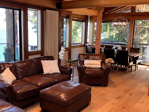 Welcome to this stunning furnished lakefront home with a brand new hot tub on the deck in South Lake Tahoe, CA. This 3 bedroom, 3 bathroom house boasts amazing lake views from every room. The property features a 2 car garage attached, formal dining room, private road access, outdoor hot-tub, and a cozy fireplace in the living room. Enjoy the convenience of a washer/dryer, wet bar, and a large back deck perfect for entertaining or simply relaxing while taking in the breathtaking scenery. The spacious master bedroom offers a serene lakefront view, making this home a true oasis. Don't miss the opportunity to experience lakefront living at its finest in this beautiful property. *Not available July & August. *