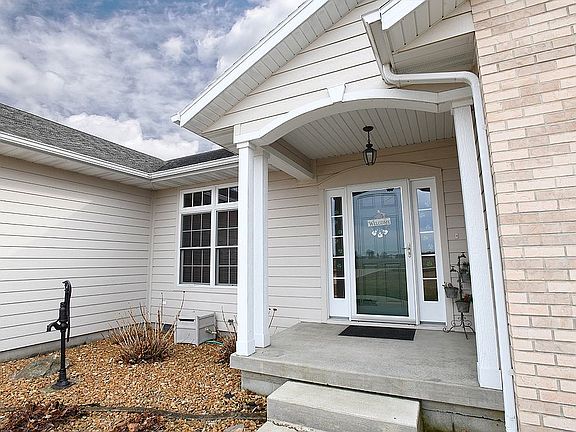 Very well maintained 3BR, 2Bath + 12x12 flex space home in country-like setting on outskirts of town. Next to large, stocked pond with lighted fountain. Neighbors to West own pond, all you have to do is enjoy the lovely water view. 2100 sq. feet with split open floor plan. Master bedroom has easy walk-in closet, oversized master bath has separate jetted tub with newly tiled shower along with double sinks and built in vanities. Kitchen with walk-in pantry adjoins dining nook, which is open to great room with gas fireplace and tons of natural light. The laundry/mud room leads from the kitchen to a spacious 3-car garage with a concrete driveway and landscaped front yard spaces. Backyard features a screened-in porch, outdoor patio and bricked entertainment area with gas fireplace and separate Yoder shed. The 2006 ranch-style home is situated on .8 acres with a private well and NO flood insurance required!