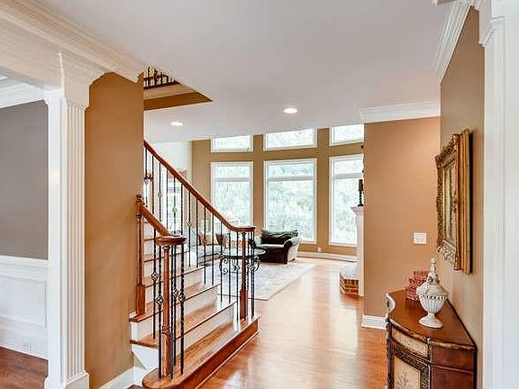 - Wet Bar, Walk-In Closet(s), Separate Shower, Bookcases, Entrance Foyer, Hardwood Floors, Tile Bath, Tile Floors, Carpet, Tray Ceiling(s), Pulldown Attic Stairs