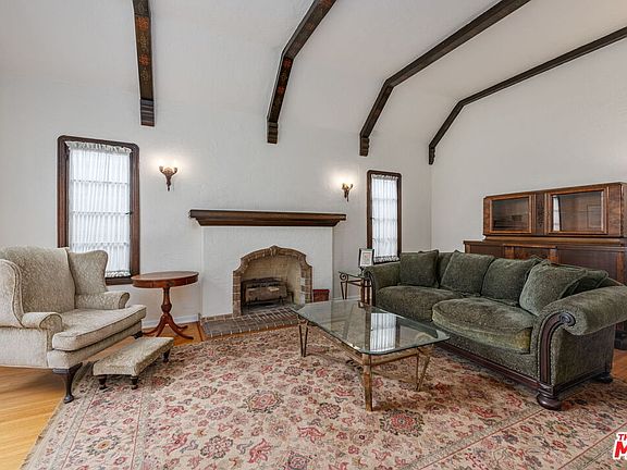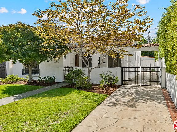 Exceptional Mint Condition 3 bed/2 bath Spanish with meticulous original unspoiled finishes and character. So unique to find a gem like this one. Charming arched covered porch to entry area with closet, entering into living room with vaulted ceiling and original stenciled wood beams, tiled fireplace with wood mantle, sconce lighting and oversized wood-framed picture window filling home with incredible natural light. Dining room with tray ceiling feature opens to sunny breakfast room with built-ins. Light and bright kitchen with authentic tiled countertops and vintage pale pink Wedgewood range/oven as the centerpiece. Separate laundry room with side door access to backyard. 3 spacious bedrooms including primary bedroom with French door to large backyard with majestic mature tree and garden in addition to detached garage. 3rd bedroom with attached 3/4 bath complete with original tiles. Full bath in hallway with separate bath and shower and with stunning vintage tile finishes. Additional features include all wood doors with original crystal doorknob hardware, hardwood flooring throughout, central ac/heat, wrought-iron gated driveway. Close proximity to Westwood Blvd. retail and restaurants, UCLA, Westfield Century City Mall and Beverly Hills. Westwood Charter School. Come be wowed by this special Spanish!