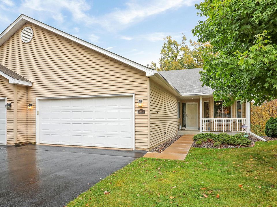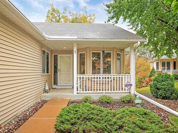 Enjoy the ease of one-level living in this beautifully updated end-unit townhome situated on a quiet cul-de-sac! The vaulted, open main-level layout features both living and family rooms, formal and informal dining, a four-season porch, spacious primary ensuite, and laundry all on one level. Stunning hardwood floors, a gas fireplace, Andersen windows, and an abundance of natural light enhance the inviting design. The primary bath showcases a gorgeous new stand-alone soaking tub. The lower level offers additional entertainment space, two bedrooms, and a 3/4 bath. Relax on the newer composite deck and enjoy peaceful views of the trees surrounding Nine Mile Creek. The home is located just one block to River Valley Park and trails leading you to the river. Move-in ready and truly a wonderful place to call home!