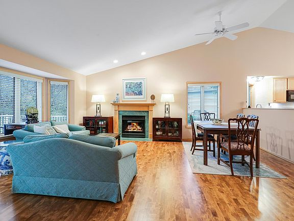 Gas fireplaceStunning hardwood floorsVaulted open main-level layoutAbundance of natural lightLiving and family roomsNewer composite deckSpacious primary ensuite