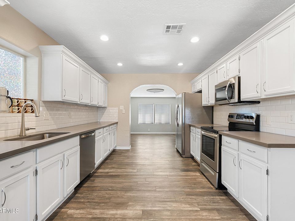 Welcome to this beautifully updated home perfectly situated in the heart of Phoenix. Designed with style and function in mind..The gourmet kitchen is a true centerpiece, featuring white cabinetry, quartz countertops, classic subway tile backsplash, and stainless steel appliances. The primary suite offers a a barn-door entry, spacious walk-in closet, and a spa-inspired bathroom complete with dual sinks, quartz counters, and a walk-in shower.Additional highlights include an upgraded secondary bathroom, dedicated laundry room with cabinetry, and a 2.5-car garage with alley access. Step outside to your backyard oasis, perfect for both entertaining and relaxing, with a covered patio, low-maintenance turf lawn, and a fenced-in pool. Ideally located near the Encanto and Melrose Districts, enjoy close proximity to dining, shopping, and downtown conveniencethis home truly blends modern comfort with Phoenix charm.