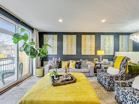 Step into this ultra-chic 3 bed/2bath Roscoe Village condo and you'll immediately see the thoughtfulness put into every inch of this upgraded home. With jaw-dropping interior design and an open floor plan, you can proudly entertain your guests at home. Just renovated kitchen with Quartz countertops and a waterfall designed peninsula elevate your cooking and dining experience. Cabinets freshly painted and redesigned to extend to the ceiling, custom tile backsplash, new sink, faucet, lighting, and all new hardware have gone into the gorgeous kitchen remodel. Generously sized living room is centered by the new gas fireplace and has been tiled in marble from the floor to ceiling. Relax on the front patio with a cup of coffee in the morning or admire the beautiful sunsets in the evenings. The addition of paneling and wood trim along the living room wall gives an elegant, timeless look to the room, and the custom banquette fits perfectly in this space with a striking chandelier hanging above. The sunny primary suite is expansive and leads to the second private outdoor patio. The oversized primary bathroom has an incredible double vanity with refinished cabinets, new fixtures, mirrors, lighting, and all new hardware. The shower has been completely renovated with new white ceramic tiles, fixtures, and glass doors. A large soaking tub and two professionally organized walk-in closets complete this luxurious suite. The 2nd and 3rd bedrooms are spacious, have well-appointed closets, custom wall coverings and lighting and leave plenty of room to sleep, work or play. The 2nd full bathroom has a neutral white shower & tub, new wallpaper, lighting, and mirror. Custom window treatments and brand-new lighting throughout the entire home make this condo truly unlike any other! Exterior parking spot included plus additional storage room. Stroll the sidewalks of Roscoe and enjoy the best boutiques and restaurants right outside your door. Level 1+ rated Audubon Elementary, only one short block away. Conveniently located near Paulina Brown Line stop, the Damen Bus, or a quick drive to I-90/94. Walk to various gyms, Pilates/yoga studios, Hamlin & Fellger Park and several grocery stores. Live here and fully embrace city living at its best!