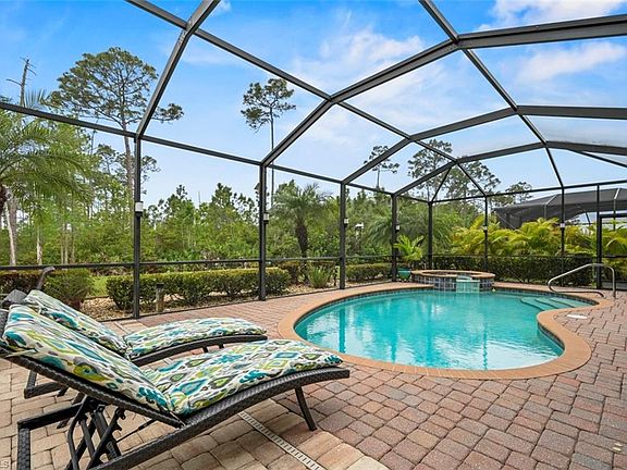 Imagine waking up to sunshine, palm trees, and your own private pool retreat. Tucked into one of Estero's most beloved, tree-lined neighborhoods, this spacious home feels like a hidden retreat. Discover this fantastic opportunity to own a spacious 4-bedroom, 3-bathroom home in Bella Terra's highly desirable Raphael floor plan, offering a generous 2,433 sq. ft. and a convenient split 3-car garage. Step out to your expansive screened lanai and enjoy the luxury of a heated pool and spa overlooking a private preserve. The extended lanai provides full coverage for the pool, perfect for year-round enjoyment, rain or shine! This well-maintained home boasts valuable peace-of-mind upgrades including full hurricane protection and a newer roof (replaced in 2019). Situated outside of a flood zone with desirable southern views, this property offers abundant natural light throughout the day. Inside, the thoughtful split bedroom layout features elegant formal living and dining rooms. The open kitchen flows seamlessly into the family room, creating an ideal space for entertaining. You'll appreciate the screened front porch, a beautiful leaded glass entry door, an upgraded kitchen, and a unique bar area complete with a wine cooler – perfect for your next gathering. Don't miss this exceptional Bella Terra home! The 999 acre Bella Terra community features 400 acres of conservation preserves and 100 acres of lake encompassing a resort-style clubhouse, a 24-hour fitness center, engaging activities like bingo and boot camp, water aerobics, poker, and food truck nights for a vibrant social life. Every member of the family will find something to enjoy, from the resort-style pool and spa to the secured, shaded children's play area. Sports enthusiasts can partake in sand volleyball, tennis, pickleball, basketball, softball, bocce ball, or even try out the in-line skate rink. Find solace in the peaceful butterfly garden. Bella Terra is a place you'll be proud to call home.