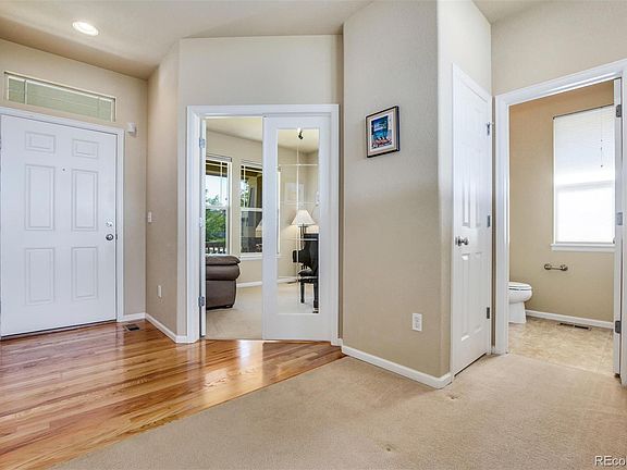 Incredible value in Idyllwilde! This is your chance to own this charming two-story home backing to greenbelt and featuring a walk-out basement to a spacious flat yard and striking mountain views from the deck and multiple windows. Inside, you'll find a main floor office/bedroom with double doors ( no closet), a great room with soaring ceilings, including large windows with views and a lovely kitchen with hardwood floors, newer stainless steel appliances (2018) and gas range! Upstairs features three bedrooms, including a spacious principle bedroom with tray ceiling, five-piece bathroom, dual vanity, walk-in closet and tile tub and shower. The additional guest rooms feature views of the mountains and access a full bathroom upstairs as well. The fully finished basement offers a multitude of options, including a small bedroom , (best used as office or craft room), a full bathroom, additional rec room and even more space as a workout room or extra flex room. Exterior was painted in the last three-years, fence stained last year, new sump pump, new fifty-gallon water heater, washer and dryer included and the list goes on. Don't wait to schedule this amazing home for the chance to live in sought-after Idyllwilde; an award winning community providing a beautiful clubhouse , a convenient coffee shop, a fitness center, swimming pool, spacious park & miles of walking and biking trails. Welcome Home!