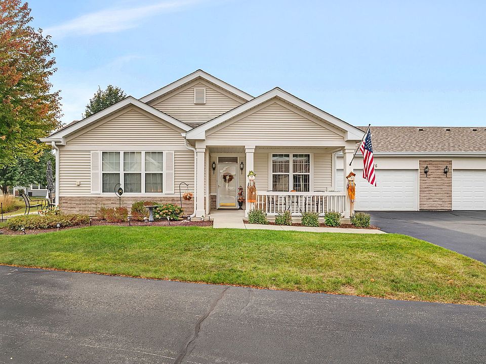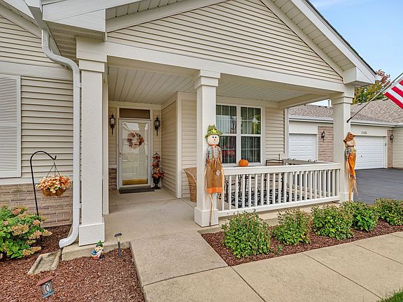 Welcome to the highly sought-after 55+ gated community of Carillon Lakes, where resort-style living and everyday convenience come together! This beautifully maintained Ellison model ranch townhome offers a thoughtful open-concept layout featuring 2 spacious bedrooms and 2 full baths designed for comfort and ease of living. From the moment you enter, you'll appreciate the inviting foyer with gleaming hardwood floors that flow seamlessly into the bright, functional kitchen showcasing granite countertops, a breakfast bar, and a casual dining area perfect for morning coffee or intimate meals. The living and dining areas provide generous space for entertaining or quiet relaxation, while large windows allow natural light to fill the home. Step outside and unwind on the expanded patio, ideal for enjoying shaded afternoons or dining al fresco, or take in peaceful sunset views from the front porch at day's end. Additional highlights include a separate laundry room, abundant storage throughout, and an insulated two-car garage with built-in workshop space. Nestled on a tranquil cul-de-sac, this home offers both privacy and convenience. Residents of Carillon Lakes enjoy an exceptional array of amenities including indoor and outdoor pools, clubhouse, fitness center, walking paths along scenic ponds, tennis courts, golf opportunities, library, and a calendar full of social activities-all designed to enhance a vibrant and active lifestyle. Experience low-maintenance living at its best in a community that feels like a year-round retreat!