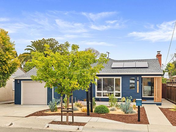Extensively upgraded 3BD/2.5BA Castro Valley home with full 2025 refurbishment and restoration hardware inspired design throughout. Owned solar panels with dual Enphase power-wall batteries provide premium energy efficiency and whole-home backup. New high-efficiency HVAC system with heat pump and smart thermostat. Designer kitchen includes custom-built center island with quartz counters, bar seating, new stainless steel appliances, and updated cabinetry. Primary suite offers California Closet wardrobe systems and a fully remodeled bath with restoration hardware style lighting, vanities, and fixtures. Additional bathrooms feature new tile, glass enclosures, and coordinated finishes. Refinished hardwood flooring, new baseboards, recessed LED lighting, hardware, and fresh interior/exterior paint. Installed front yard drainage system with sump pump. New zebra blinds throughout. Relocated washer/dryer in garage to fit oversized vehicles. Garage equipped with Tesla universal electric charger. Backyard includes finished 100 +/- sf bonus room/shed with electrical, two patio areas, new fencing, and drought-resistant landscape with irrigation system. Prime location near schools. No spared expense in improving this stunning home.